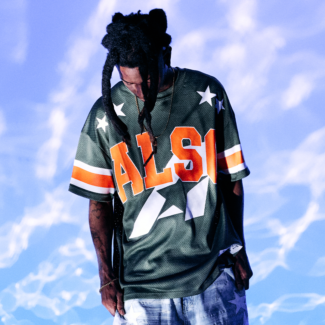 A bold silhouette built for statement style, the ALSO Star Mesh Jersey combines classic athletic energy with elevated edge. Designed in a breathable mesh fabric with a comfortable, relaxed fit, this jersey features front and back prints, double sleeve stripes, and star accents throughout. Finished with the signature “ALSO” logo in oversized placement, contrast detailing, and a custom woven label at the hem.