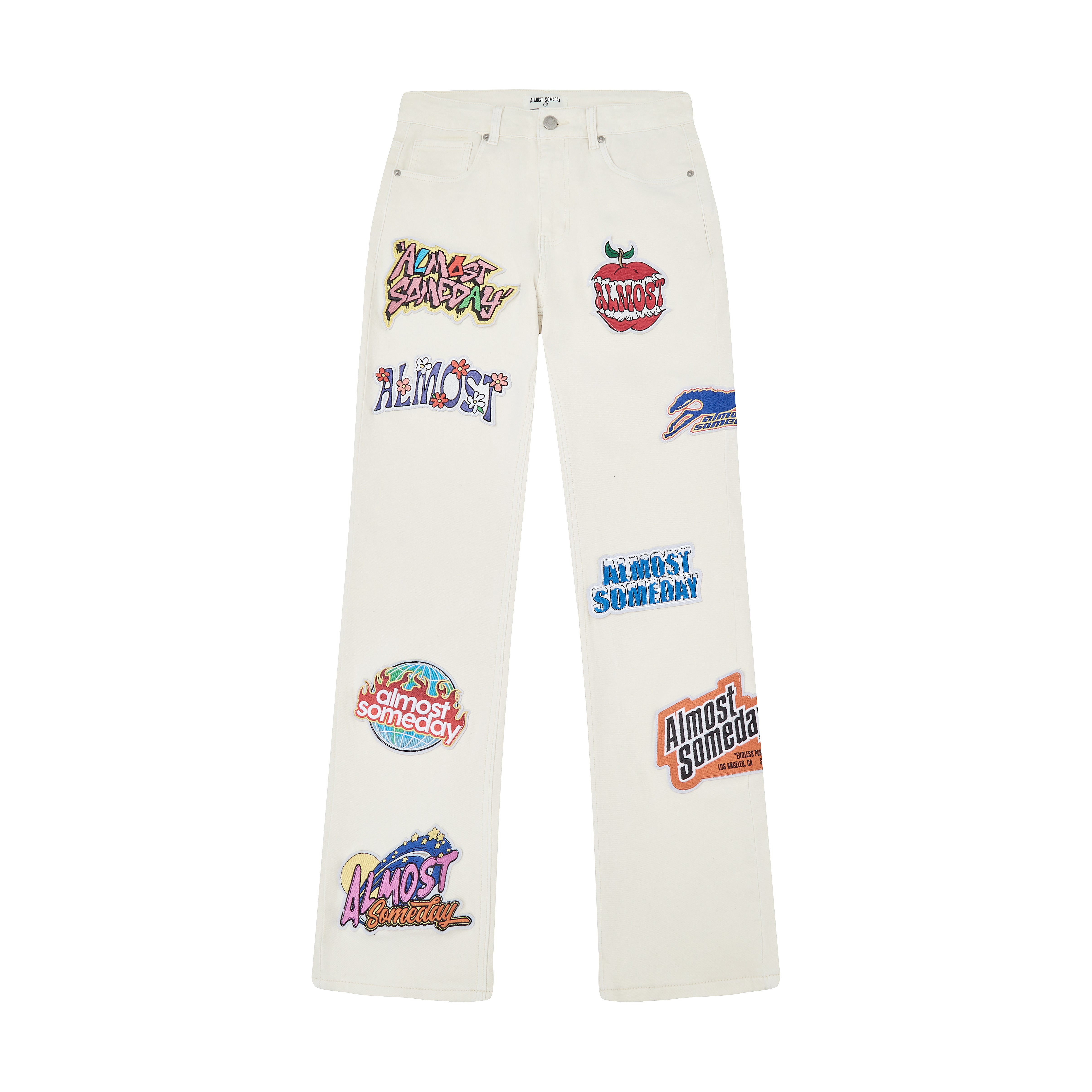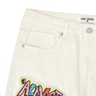 Urban artistry meets utilitarian comfort—the Hendrix Straight Leg Denim mirrors the bold, patchwork spirit of the Hendrix Denim Jorts but reimagined in a full-length, street-ready silhouette. Crafted from premium washed cotton denim, these pants showcase rich embroidered patchwork in vibrant colors and layered motifs across the legs, giving them uniquely collage-like expression and vivid depth.