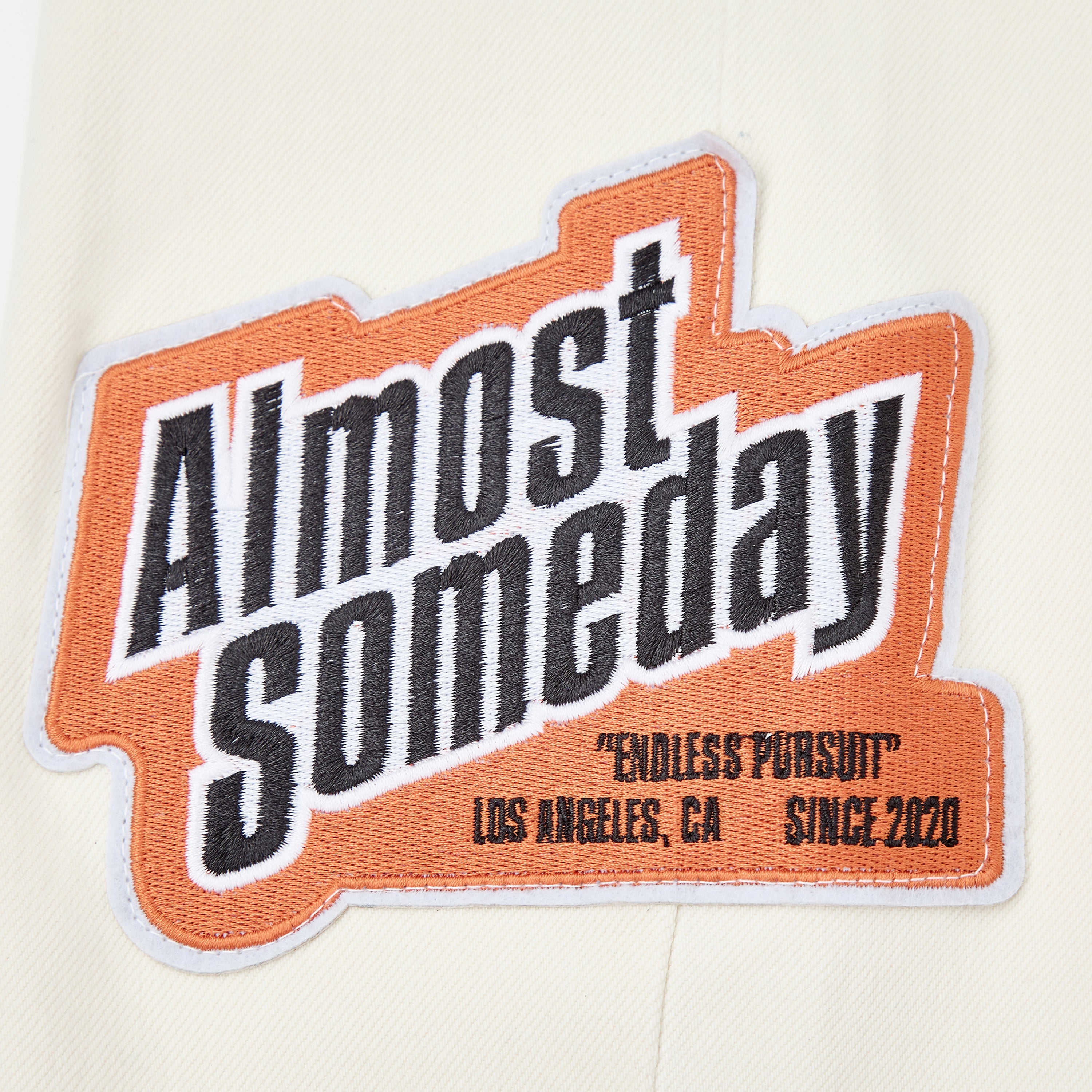 Custom Almost Someday woven waistband label