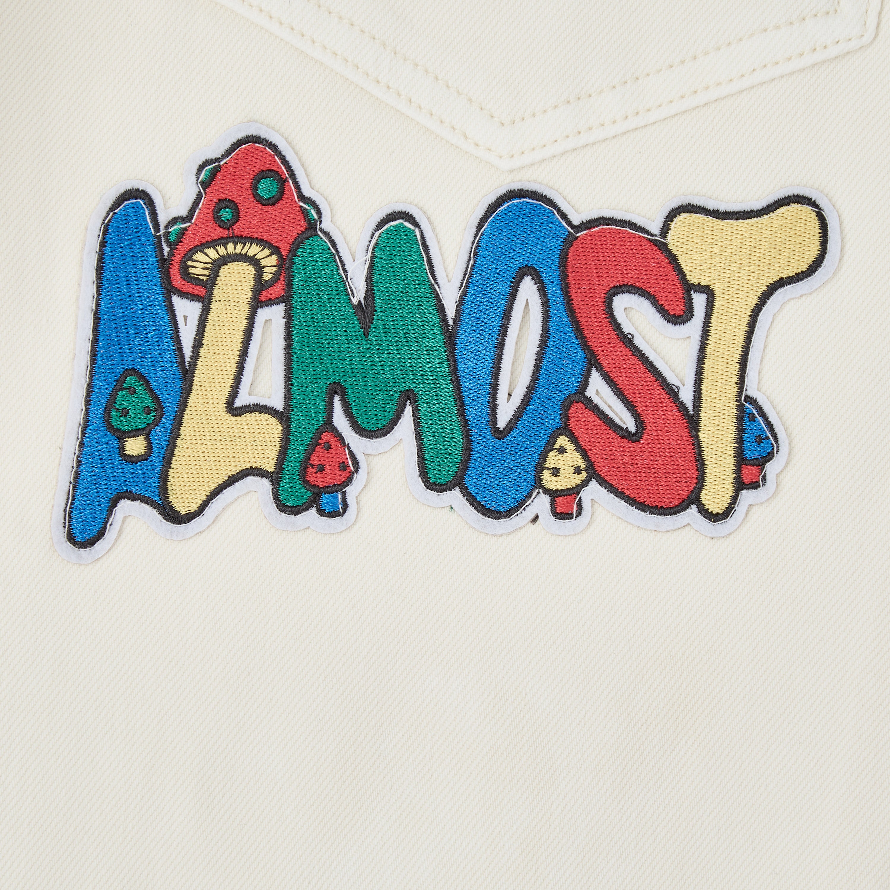 All-over embroidered patchwork embellishments for standout texture and character