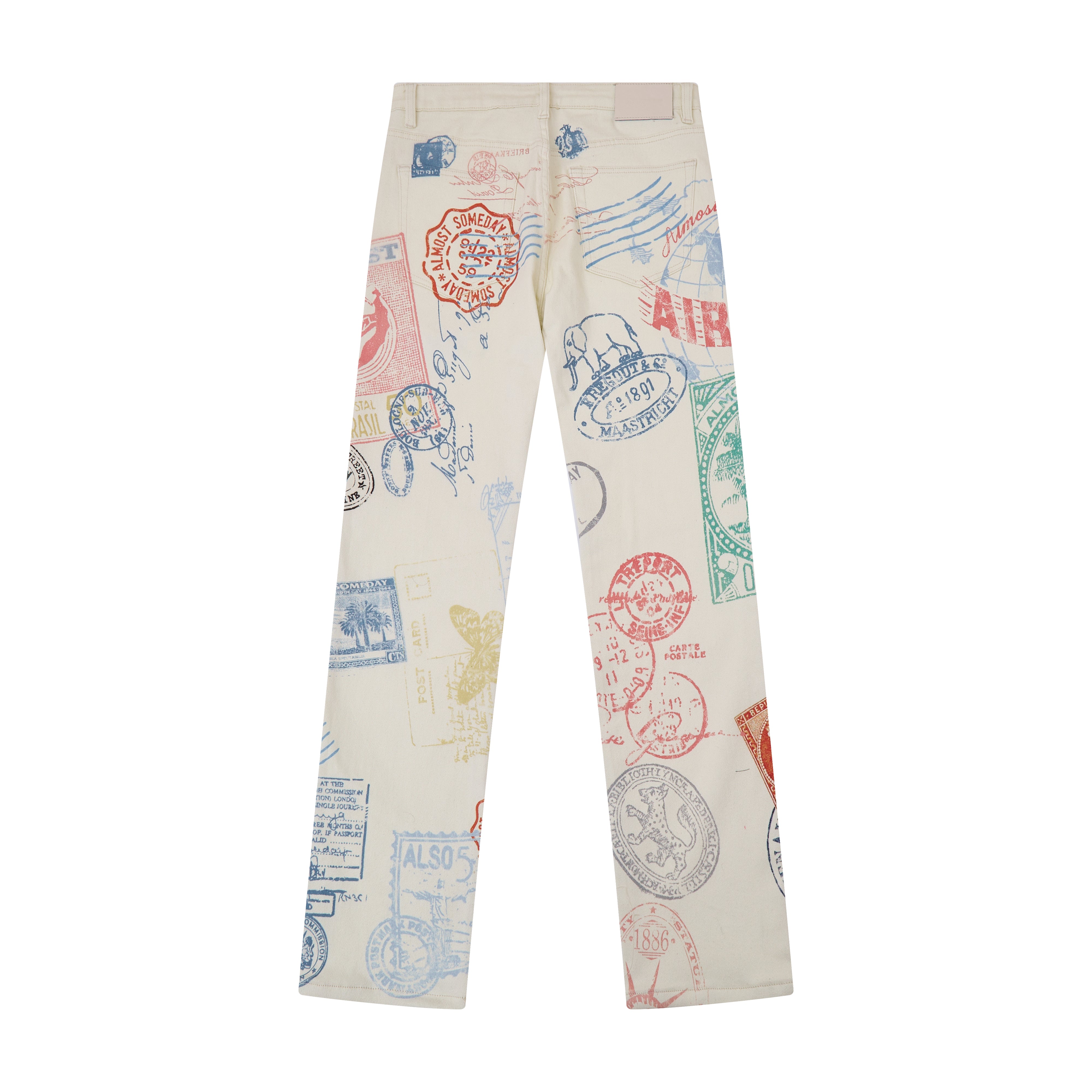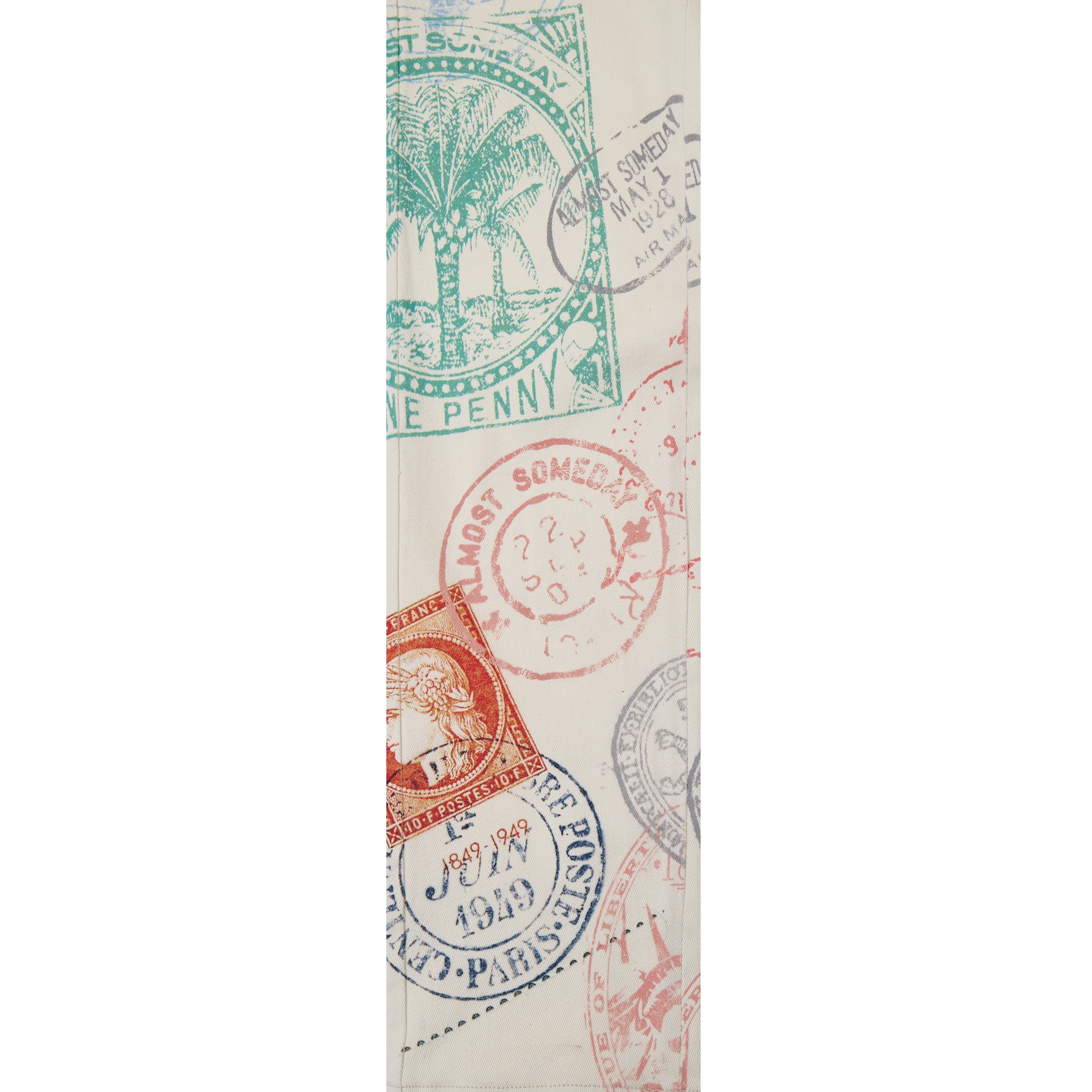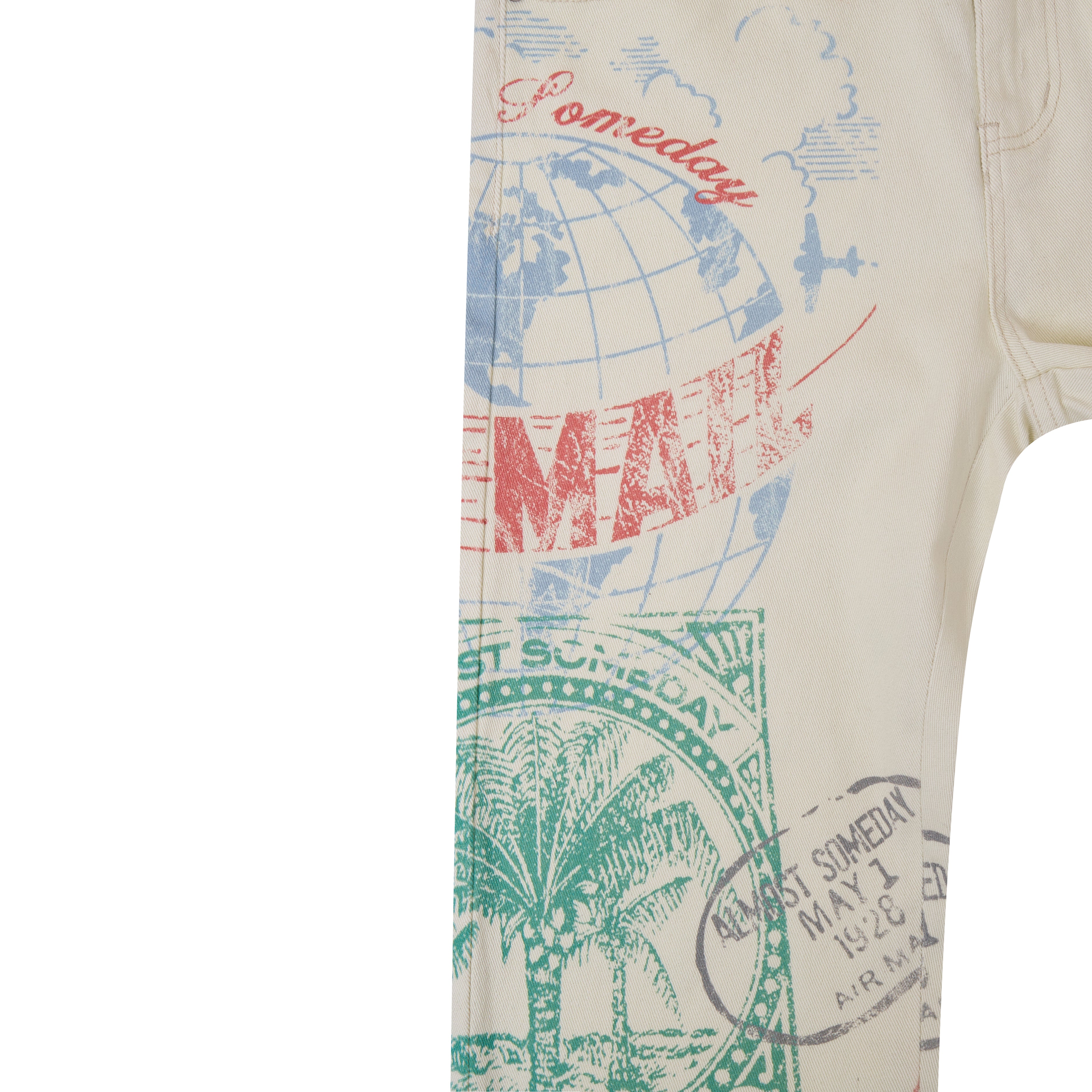 • Premium denim with an all-over postcard graphic pattern