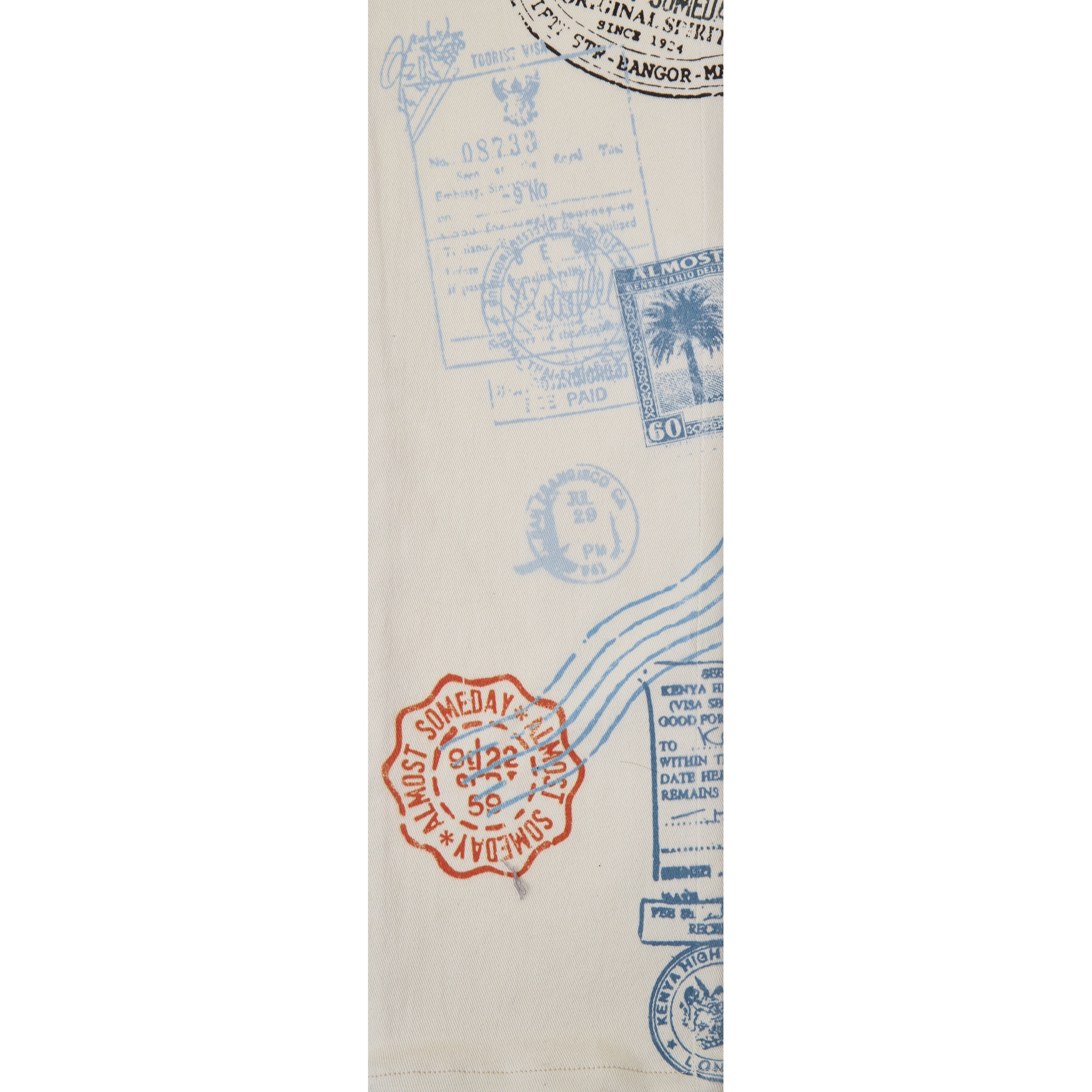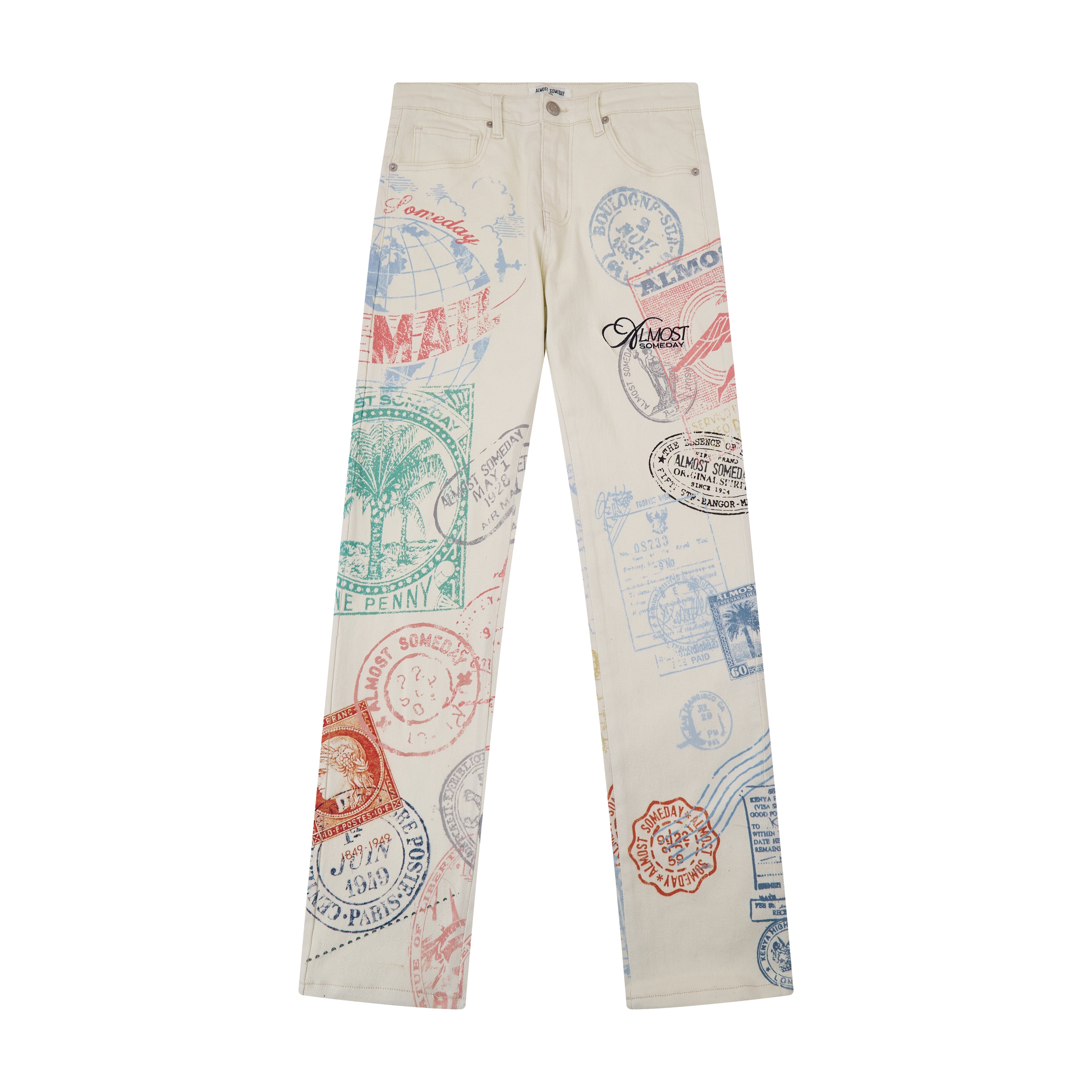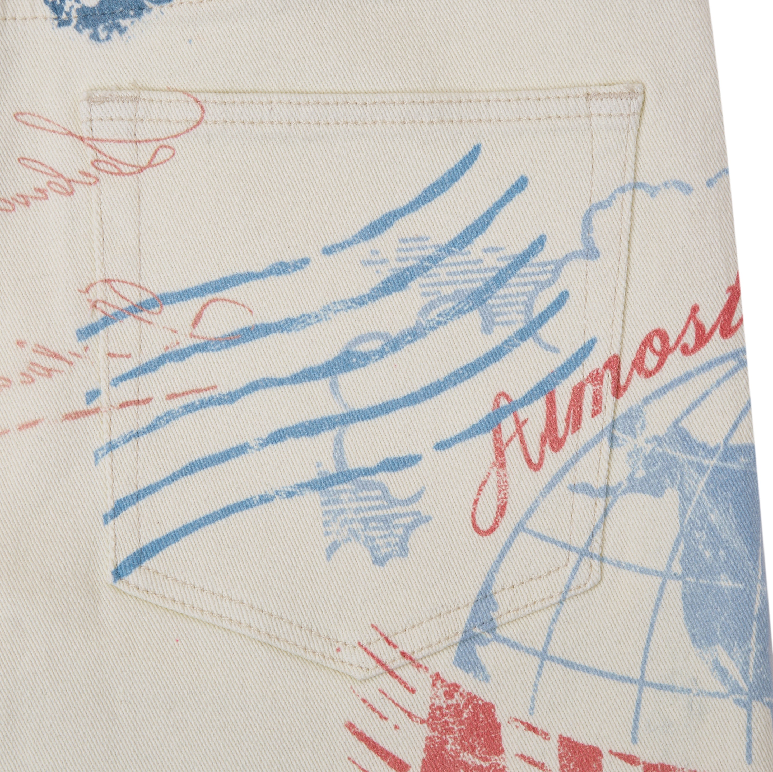 • Premium denim with an all-over postcard graphic pattern