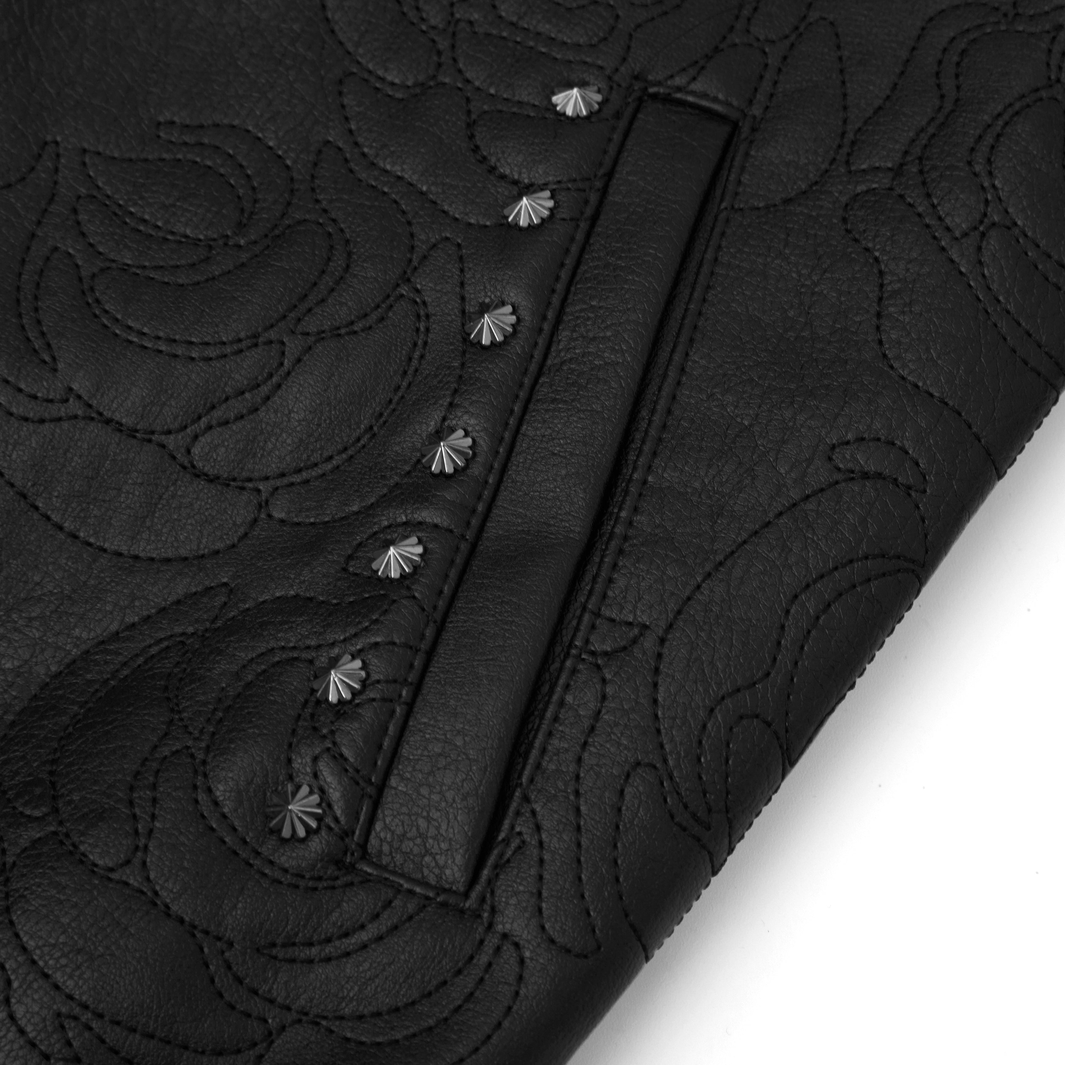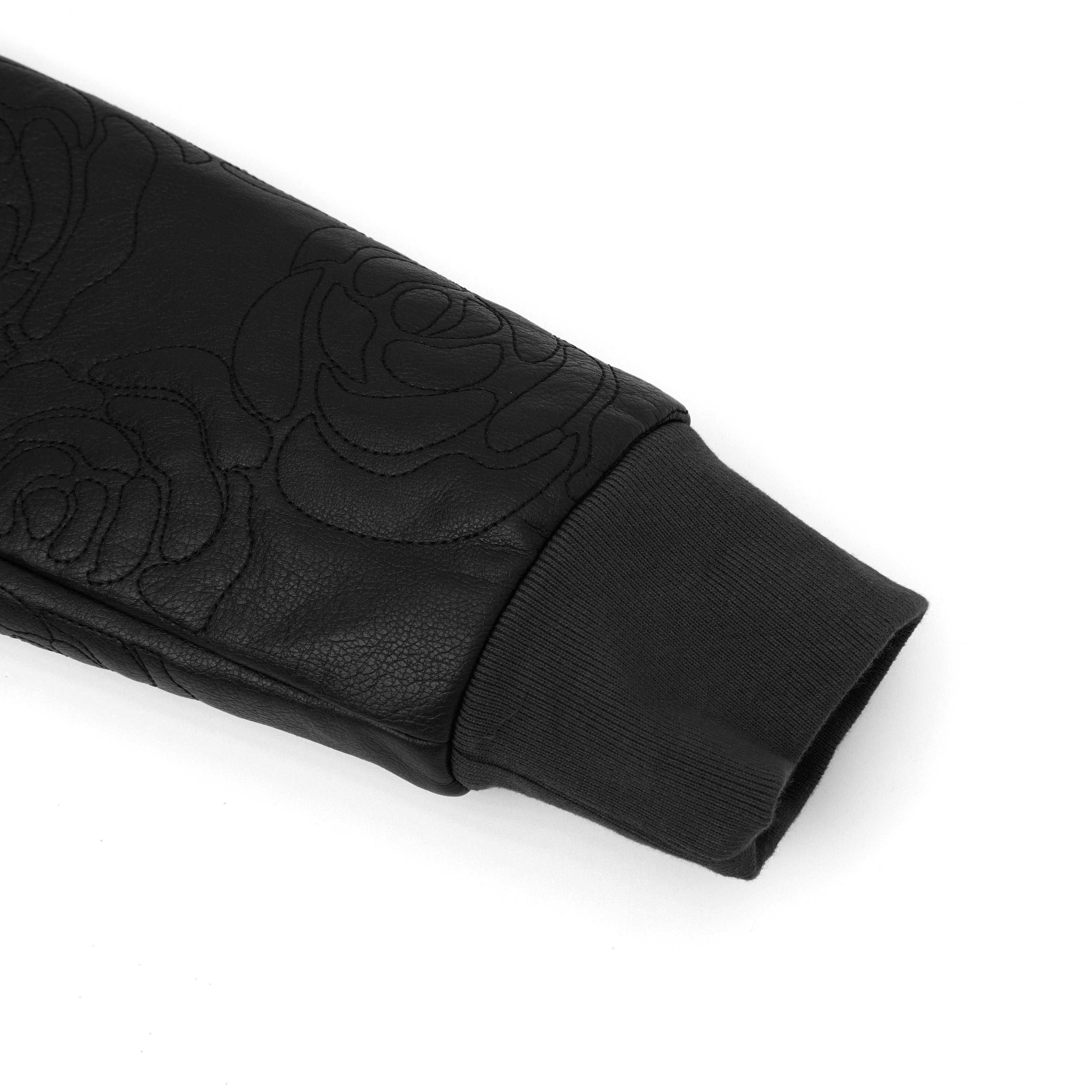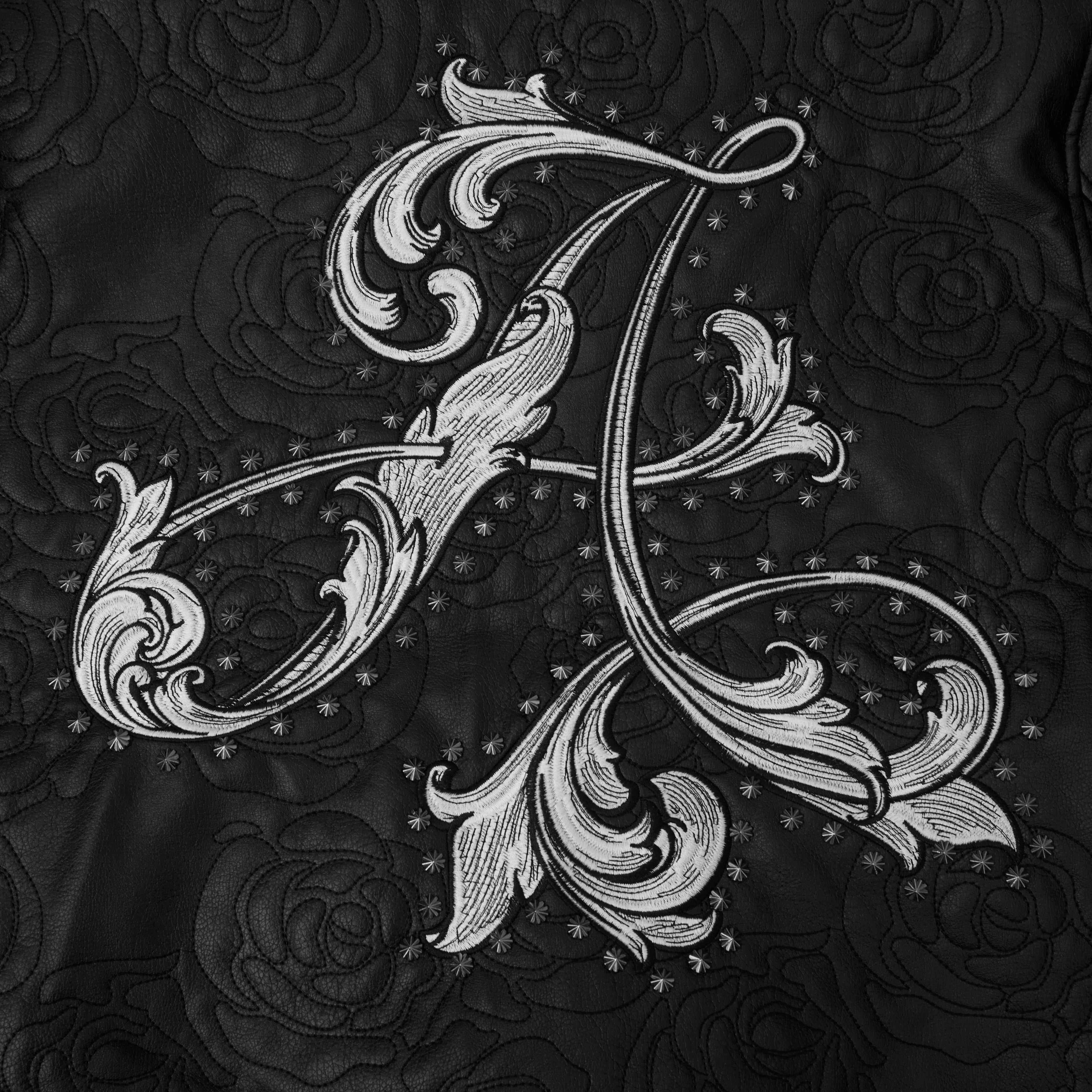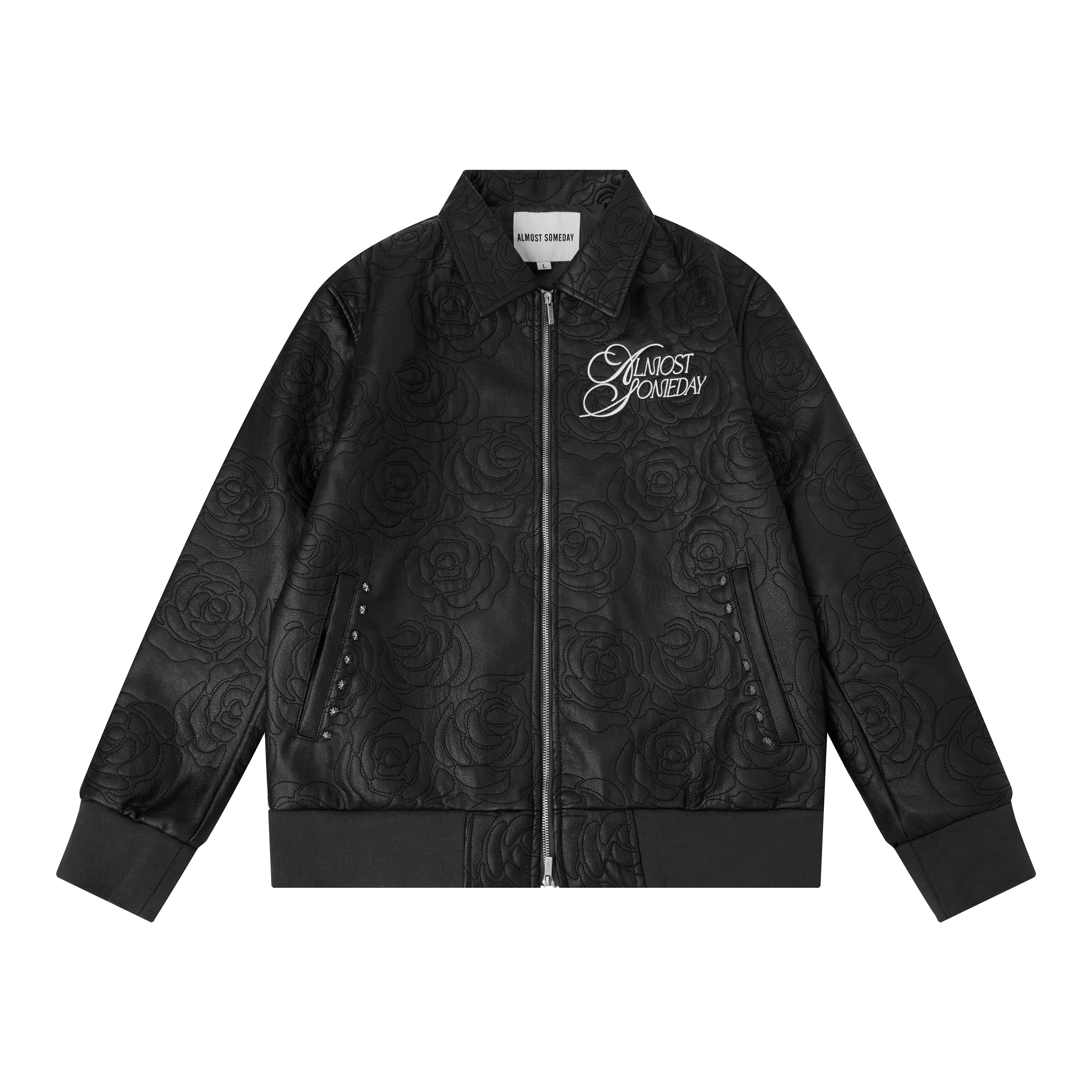 • Premium leather zip jacket with all-over rosette embroidery stitched throughout