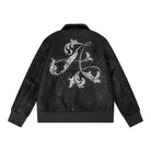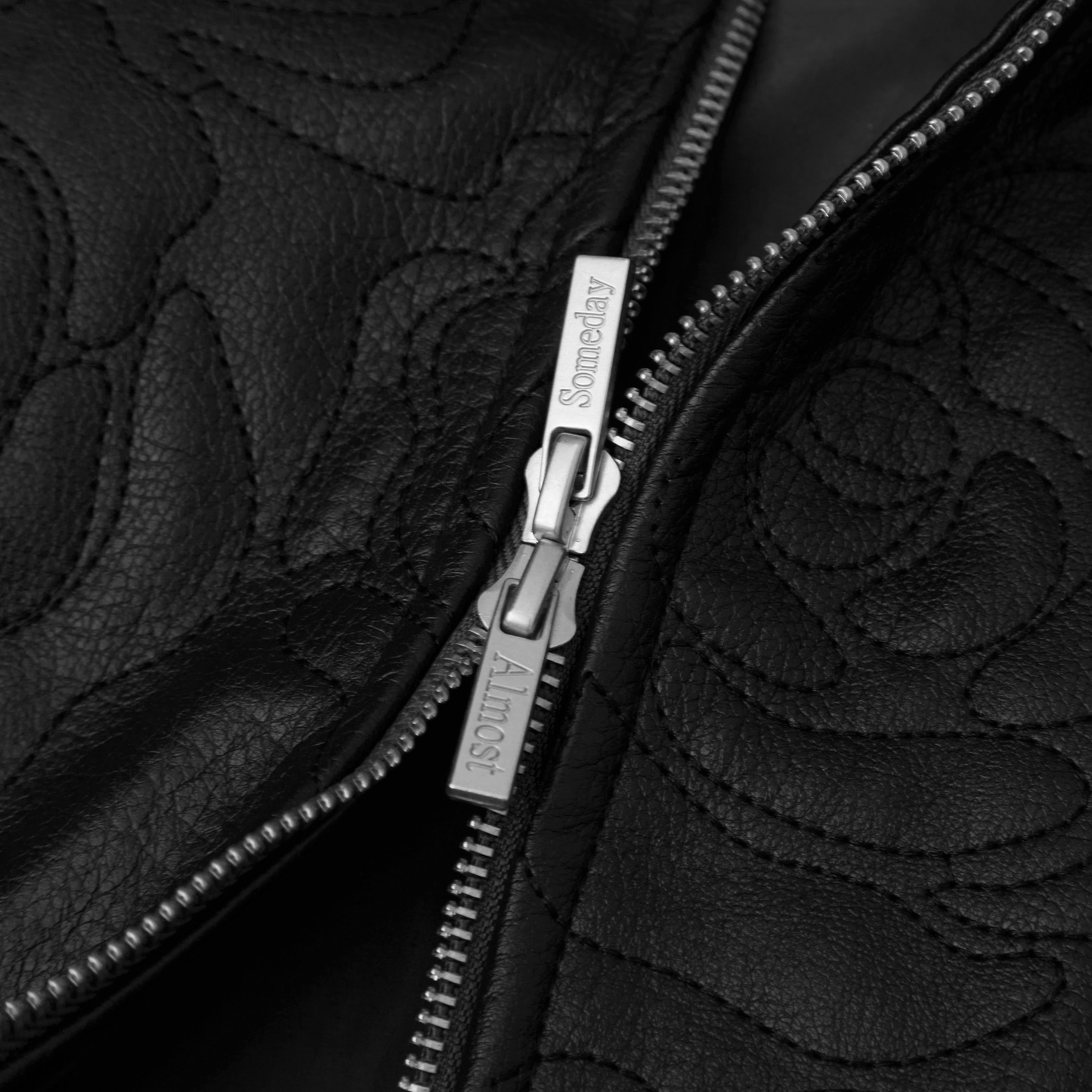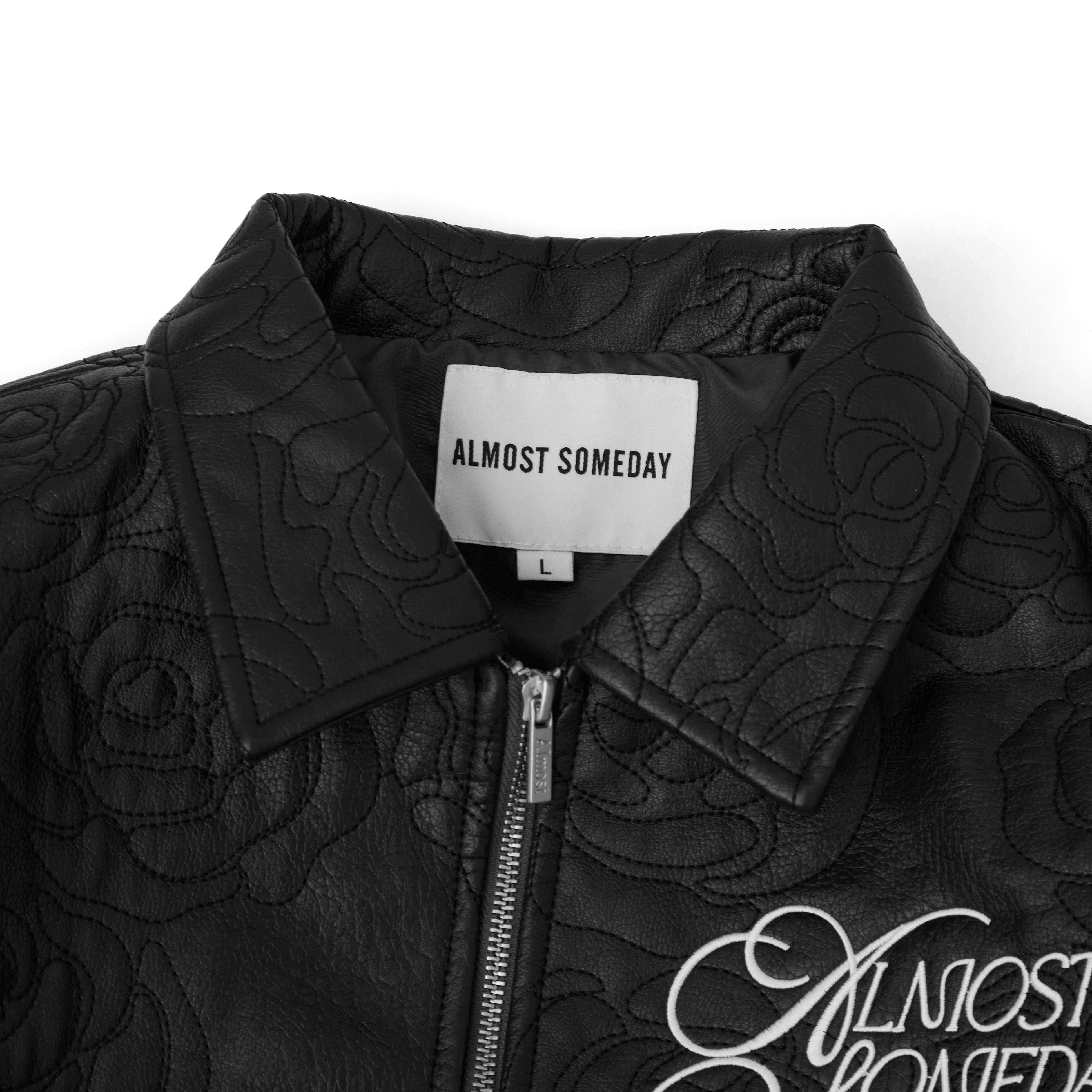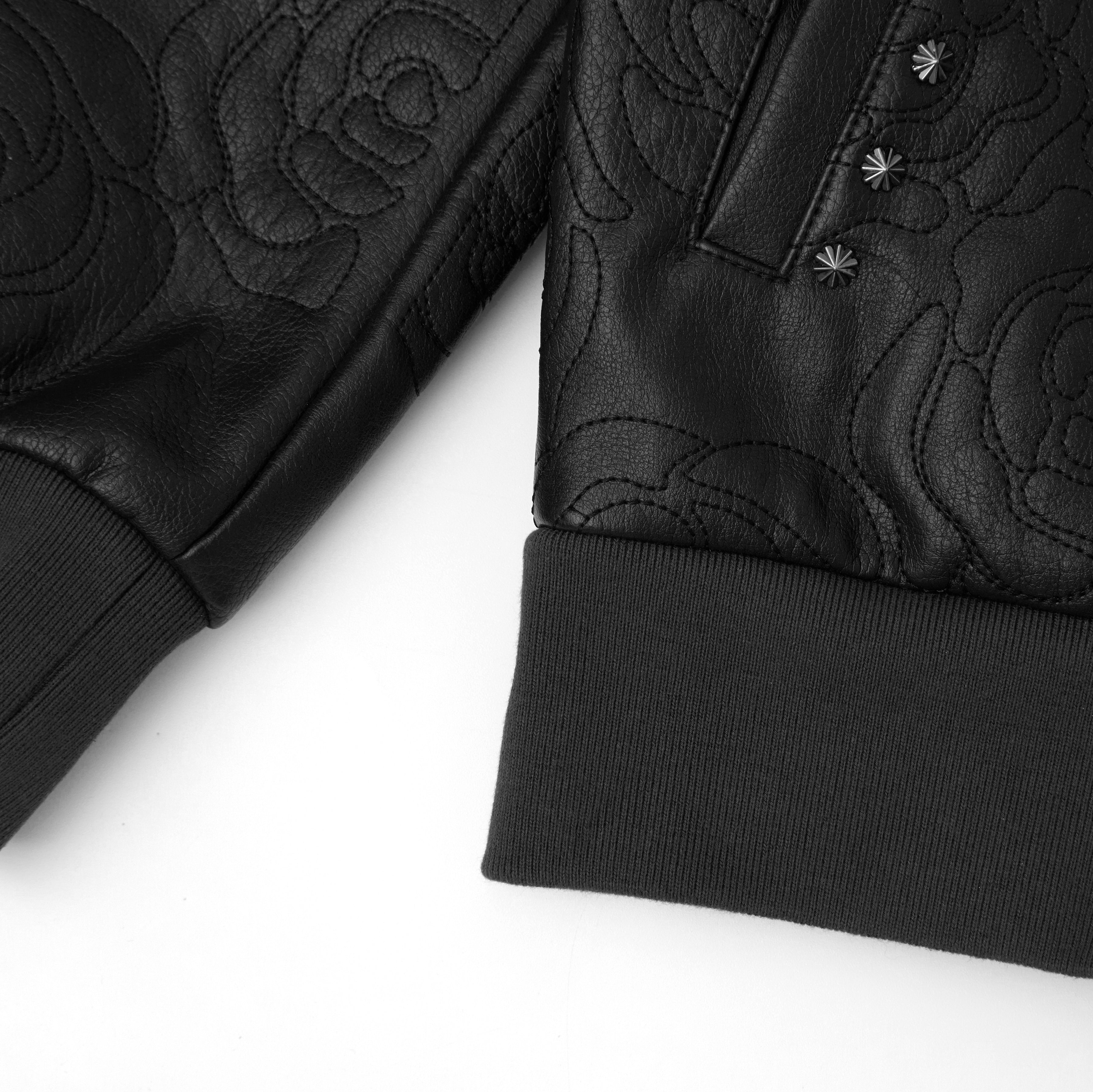 • Premium leather zip jacket with all-over rosette embroidery stitched throughout